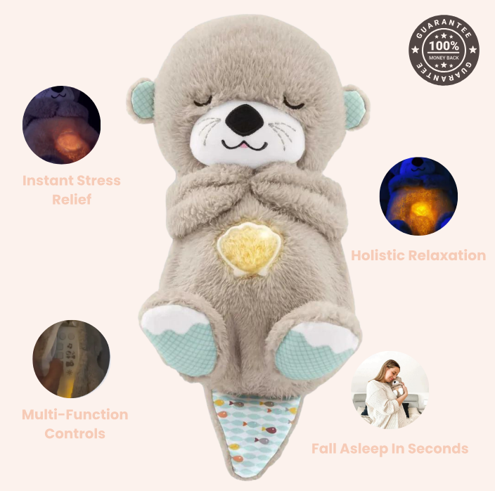 Musical otter plush sound machine with “breathing” motion for babies from birth +